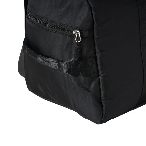 Bolsa esportiva de 35 litros em poliéster resistente à água com cinco compartimentos, sendo dois deles exclusivos para tênis e itens molhados. Contém bolso para encaixe em malas de viagem, bolso interno, alça de mão lateral extra e acompanha alça transversal.