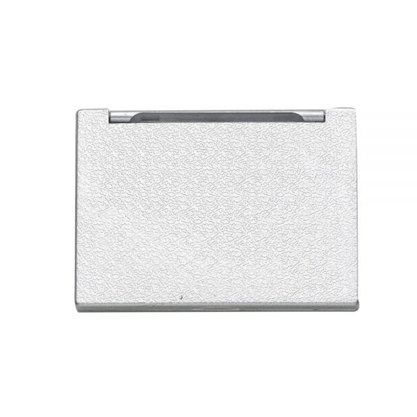 Espelho duplo sem aumento em material plástico, contém a forma de um coração centralizado na tampa do espelho. Possui texturização no verso e ao redor do coração.