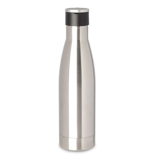 Garrafa térmica feita em inox 304 de parede dupla com capacidade de 500ml, tampa plástica com alça para transporte.