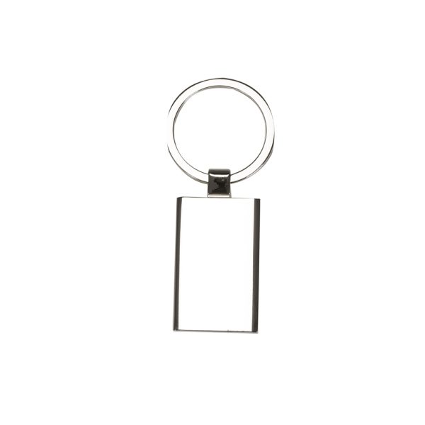 Chaveiro de metal retangular com chapa central, verso liso.