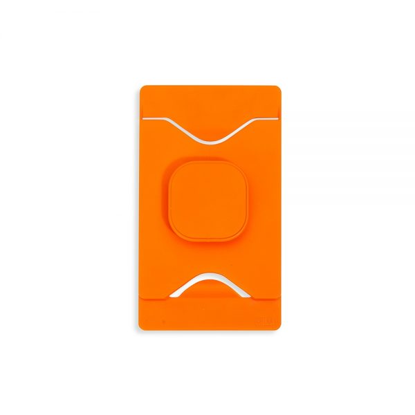 Adesivo porta cartão para celular com suporte retrátil. Para utilização basta remover os selos e colar a parte adesivada no celular. Possui na parte traseira um suporte retrátil quadrangular.
