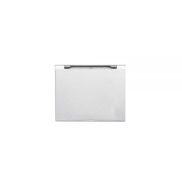Espelho plástico duplo com aumento. Frente e verso liso porém a parte superior não é plana, possui um detalhe de ondulação.