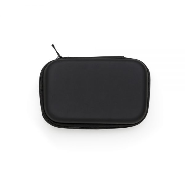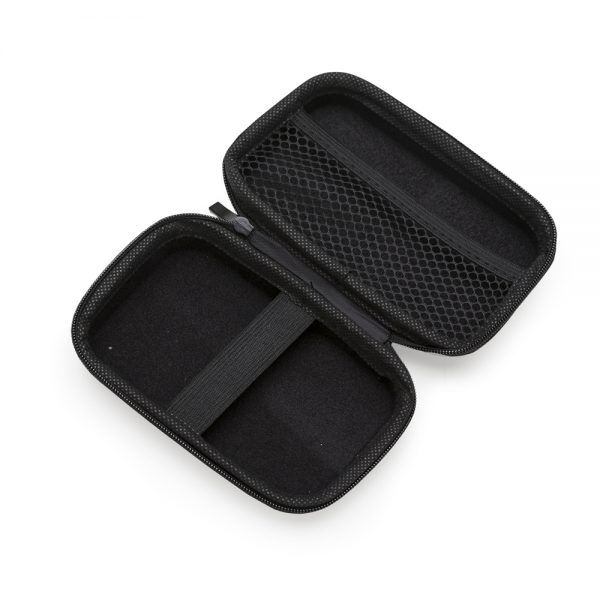 Estojo couro sintético com zíper, possui rede interna e elástico de nylon. Case utilizada para montar kits tecnológicos.