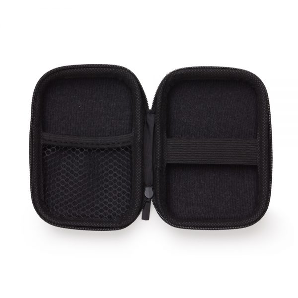 Estojo couro sintético com zíper, possui rede interna e elástico de nylon. Case utilizada para montar kits tecnológicos.