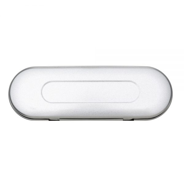 Estojo de metal brilhante para duas canetas com parte interna revestida de espuma. Imagem meramente ilustrativa, NÃO ACOMPANHA CANETA!
