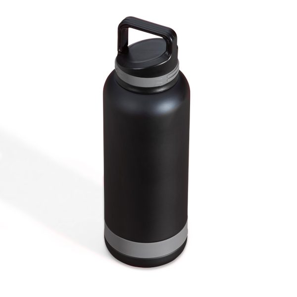 Garrafa térmica 700ml em inox, tampa rosqueável com suporte gancho. Tem pintura fosca e detalhe emborrachado na tampa e parte inferior.