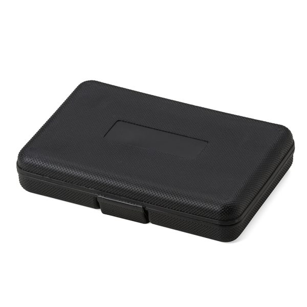 Kit ferramenta 11 peças em estojo plástico. Maleta plástica com detalhe retangular no centro frontal e verso com o detalhe na lateral inferior, possui texturização no estojo e uma trava superior. Acompanha: conjunto de 5 chaves Allen, fita métrica de 1 metro, chave teste, estilete, chave dupla(Phillips e Fenda), alicate e cabo plástico para encaixe da chave dupla.