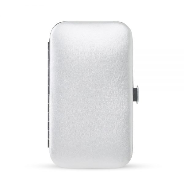 Kit manicure 6 peças em estojo de couro sintético. Possui: lixa, pinça, empurrador de cutícula, cortador de cutícula, tesoura e cortador de unha. Parte interna revestido de veludo com suporte de couro para fixar as peças. Para abrir o estojo basta apertar o botão central. OBS.: APENAS NA COR PRETA O VELUDO INTERNO É PRETO!