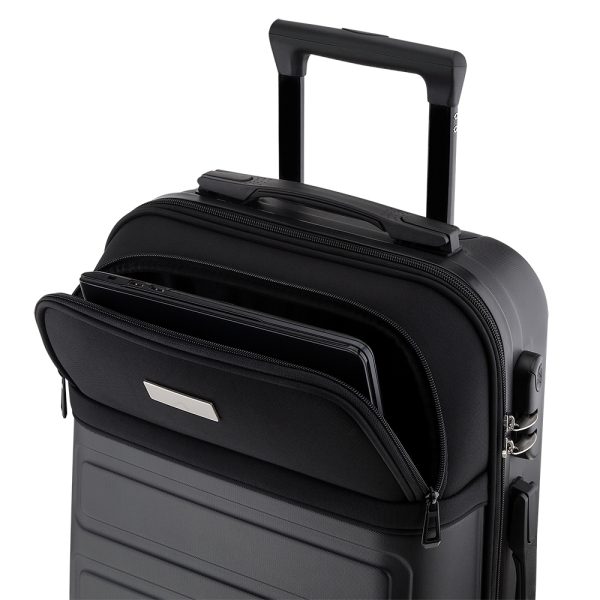 Mala de viagem com segredo, feita em plástico ABS e tecido, possui 2 divisões internas, sistema de carrinho de aço, alça de mão superior e lateral, rodas 360 graus e acompanha plaquinha para personalização.