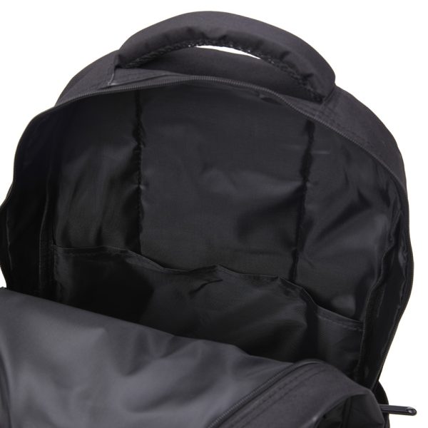Mochila de nylon 30 litros com três compartimentos, sendo o principal com bolso para notebook 15,6.Com bolsos laterais telados, a mochila possui alça para encaixe em malas de viagem, duas alças de mãos e alças para as costas com revestimento espumado. Acompanha plaquinha metálica.