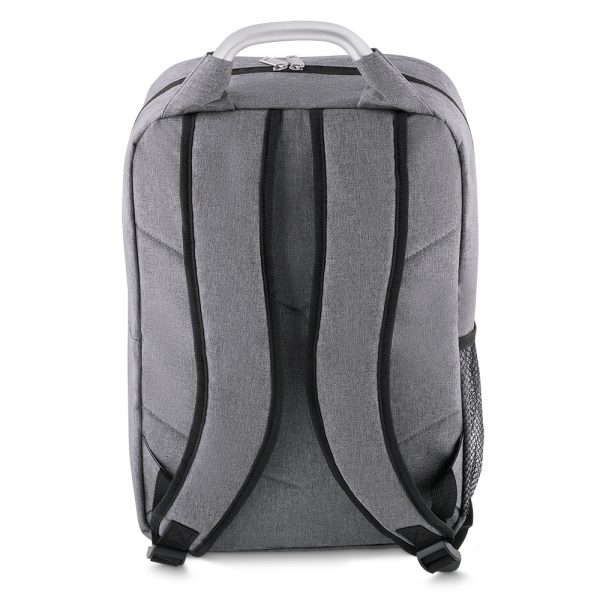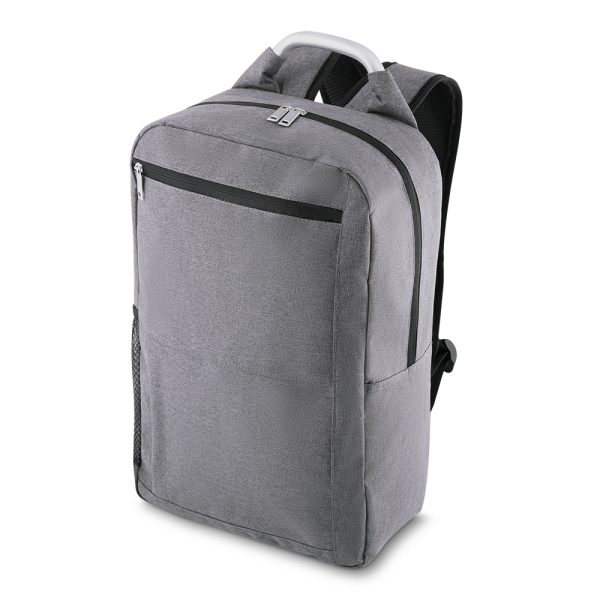 Mochila porta notebook confeccionada em nylon, possui bolso frontal, bolsos laterais em malha, bolso superior com porta notebook na parte interna. Alça de mão em aço, alças ajustáveis para as costas com revestimento de espuma para maior conforto.