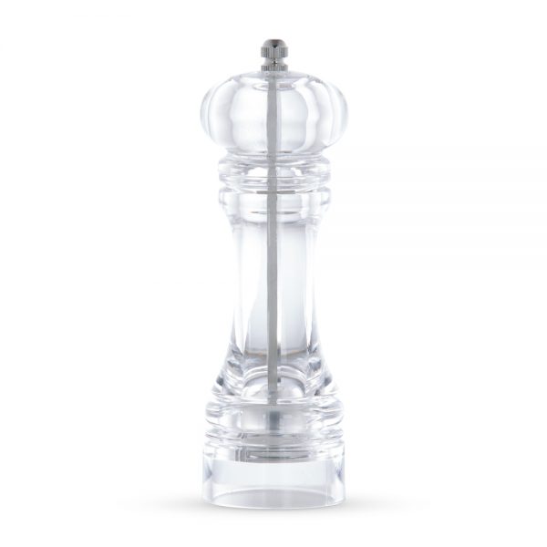 Moedor de pimenta em acrílico translúcido, possui pino de alumínio superior(basta desrosquear para retirar a tampa e colocar a pimenta dentro).