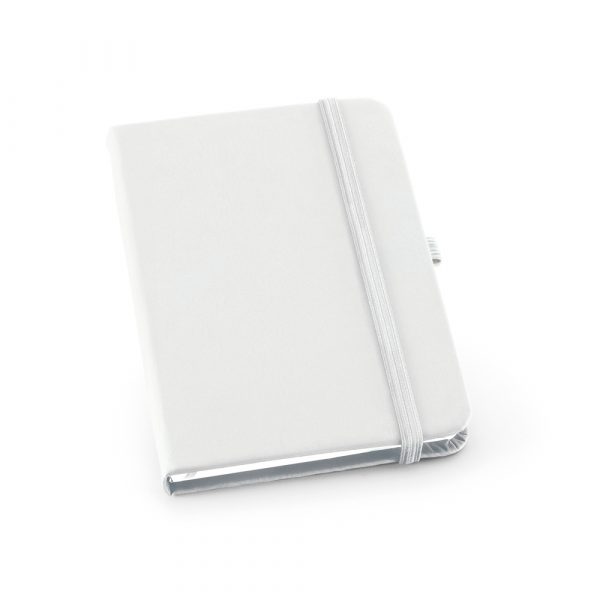 Caderno A6 em c. sintético com capa dura e 80 folhas lisas. 90 x 140 mm moleskine personalizada com suporte caneta