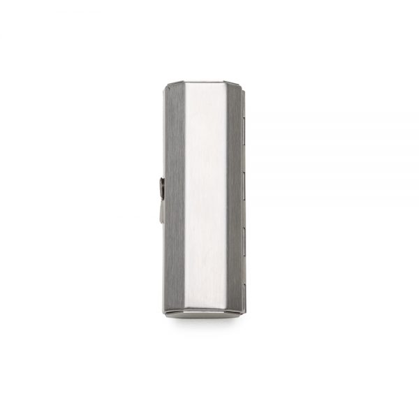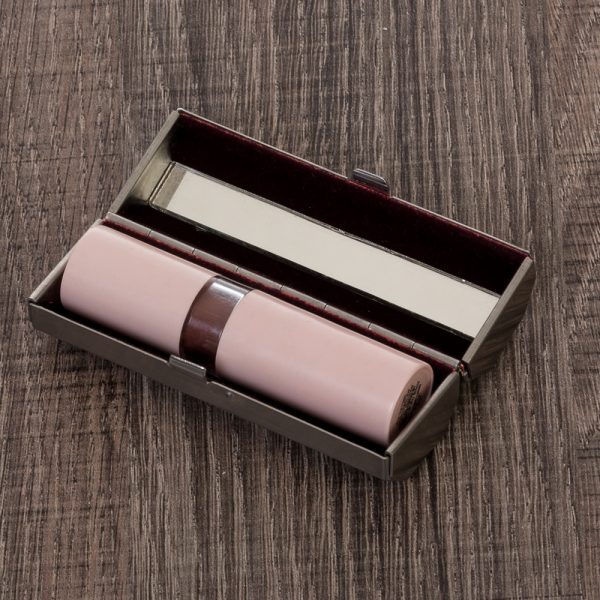 Porta batom metal com espelho e parte interna revestida de veludo.