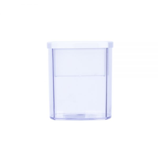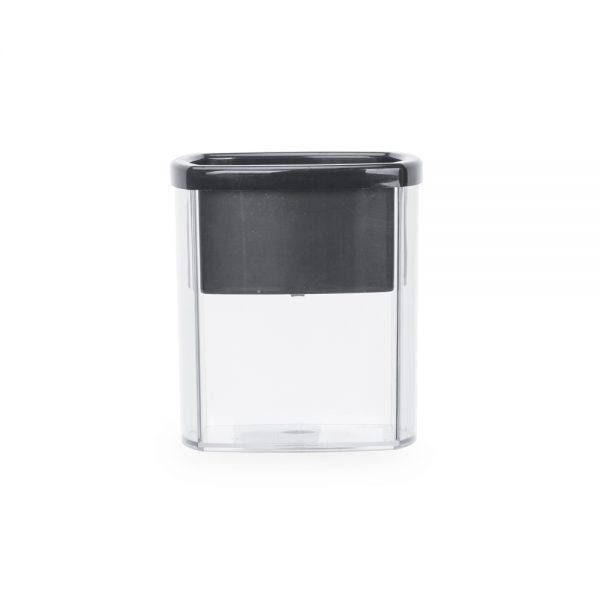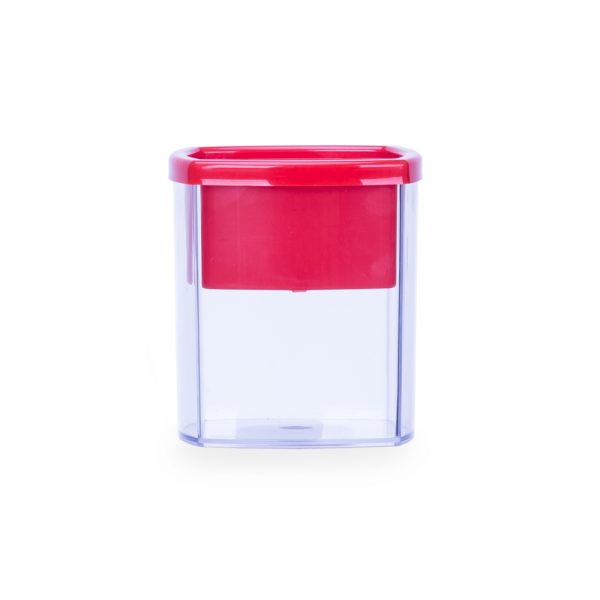 Porta caneta plástico com porta clips. “Copo” plástico resistente com parte interna colorida removível, tem duas separações para canetas e separação designada para clips.
