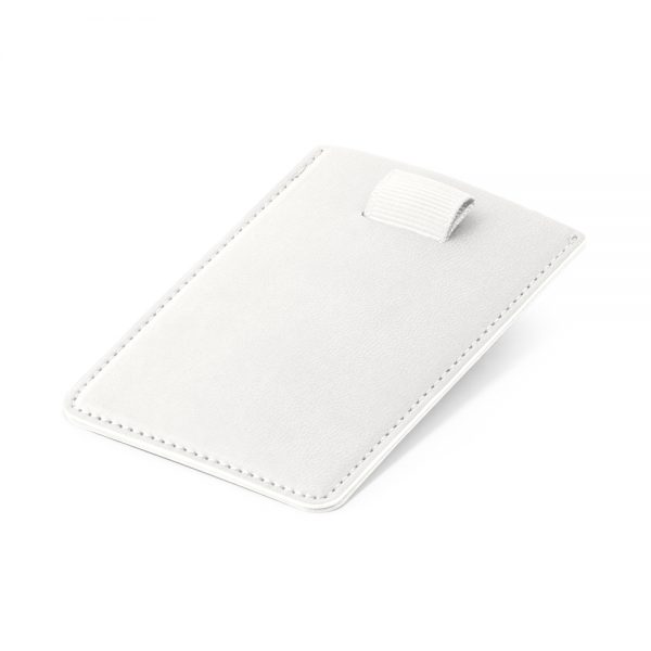 Porta cartões em PU com bloqueio de RFID e fita em poliéster para retirar facilmente seus cartões. Com capacidade para guardar até 2 cartões. 92 x 65 mm