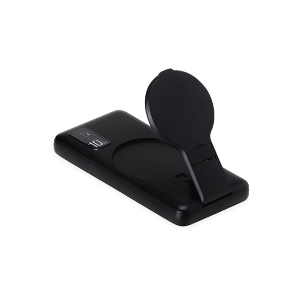 Carregador portátil plástico via indução ou via cabo com 10.000mAh e indicador led de bateria. Com suporte inclinável para o carregamento via indução, o power bank possui duas portas de saídas USB, possibilitando o carregamento de dois dispositivos simultaneamente. Contém porta de entrada tipo-C, V8 e acompanha cabo USB.