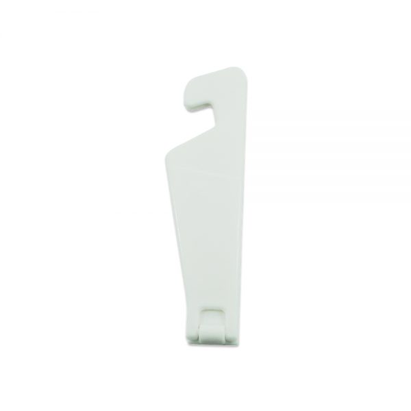 Suporte plástico para celular. Basta abrir o suporte e encaixar o celular para utilização em horizontal.